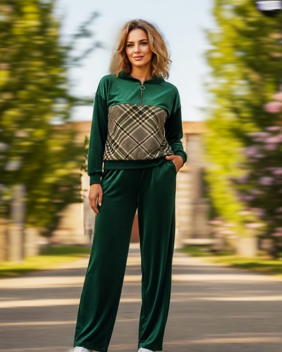 Βελούδινο Αθλητικό Σετ με Καρέ Pattern & Ζεστή Υφή – ” Urban Velvet ” – LO