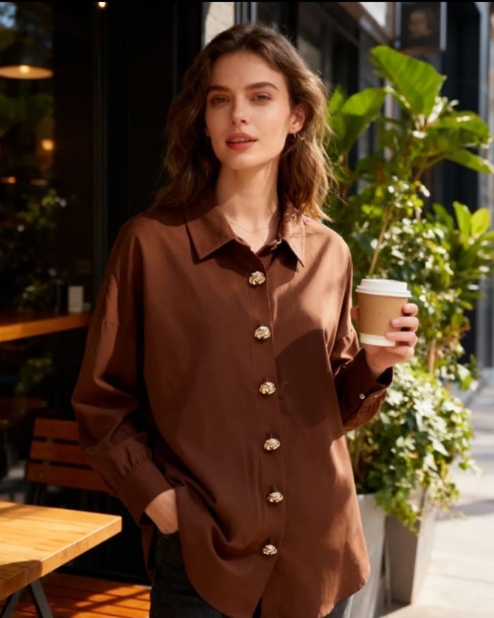 Αυτό το πουκάμισο είναι η απόλυτη έκφραση διαχρονικής κομψότητας με μια δόση glam : Λείο και ελαφρύ ύφασμα , με φίνα υφή που αγκαλιάζει το σώμα . Μεγάλα χρυσά κουμπιά σε όλο το μπροστινό μέρος , που λειτουργούν ως κόσμημα και τραβούν τα βλέμματα . Ιδανικό για day – to – night εμφανίσεις  —  από το γραφείο μέχρι το dinner date . Style tip : Φόρεσέ το μέσα από ψηλόμεσο παντελόνι ή φούστα και συνδύασέ το με χρυσά αξεσουάρ για ένα total luxe look .