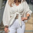 Πουκάμισο κιπούρ με μακρύ φαρδύ μανίκι με μανσέτα στο τελείωμα και γιακά.
