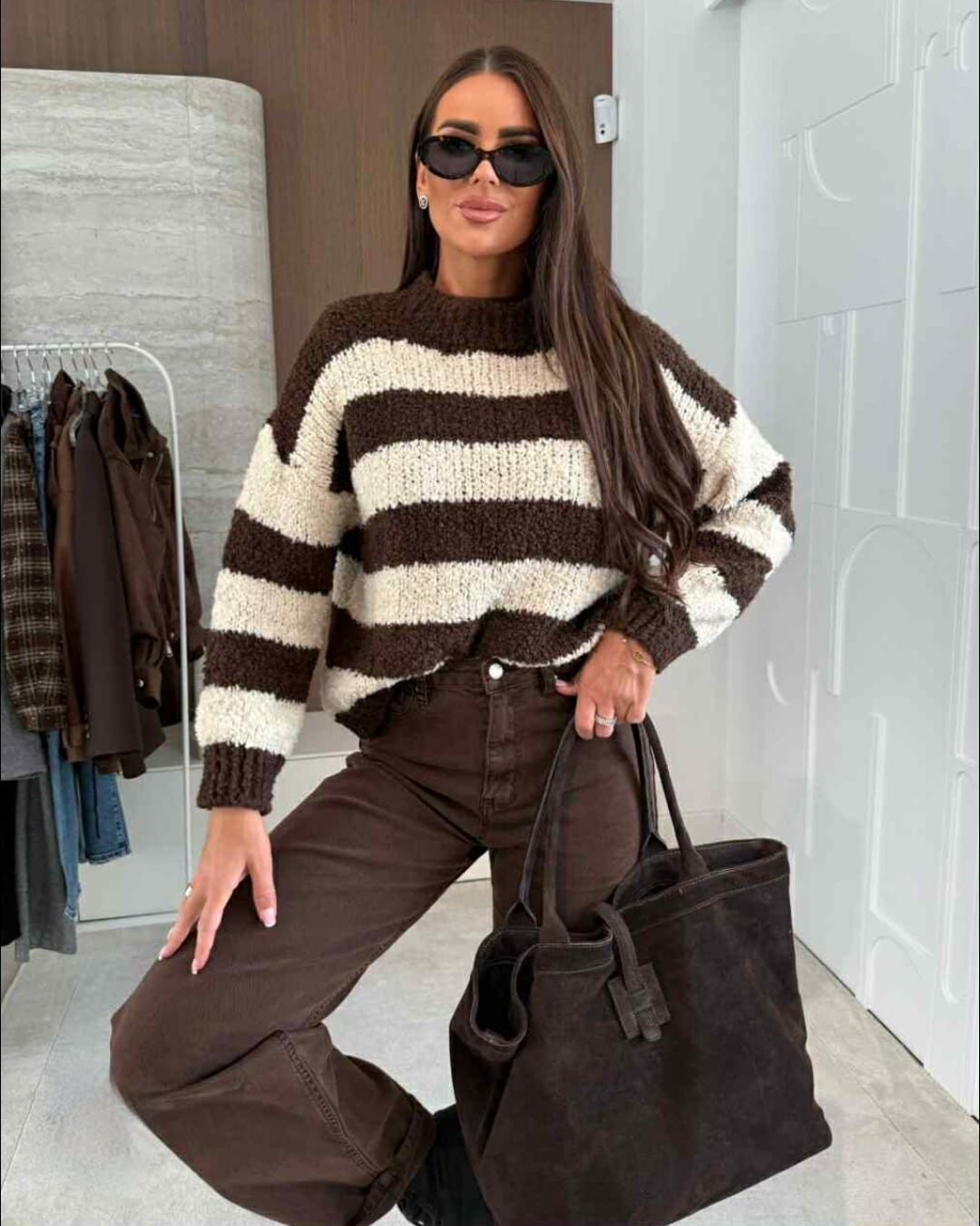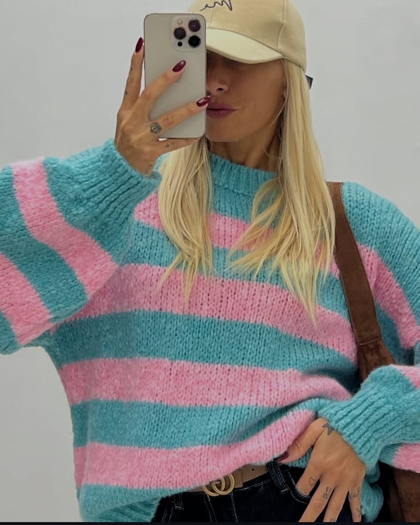 Ρίγες Χρωματικής Τόλμης : Το Πουλόβερ που Ξυπνάει τη Διάθεση – ” Color Block Chunky Pullover “- AD