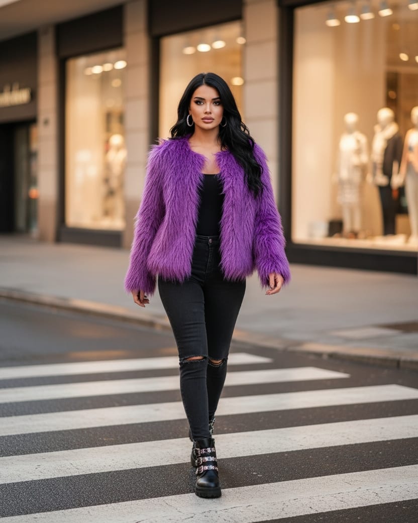 Τζάκετ με μακρύ οικολογικό τρίχωμα και standout αισθητική , γούνα – Eco Fur Jacket – AD
