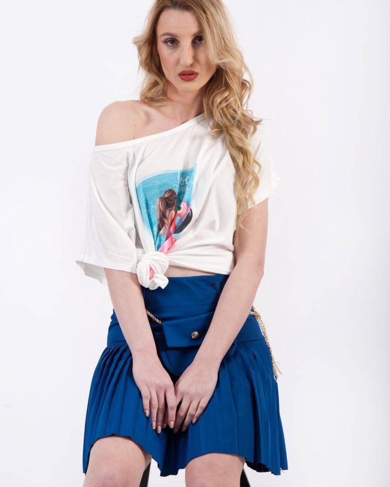 Φούστα φλοράλ μίνι με βολάν στο κάτω μέρος , δένει χιαστί με κορδέλα