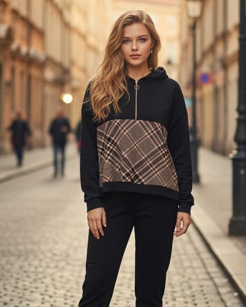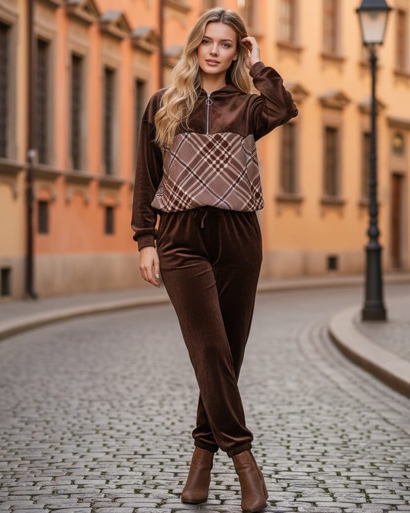 Βελούδινο Αθλητικό Σετ με Καρέ Pattern & Ζεστή Υφή – ” Urban Velvet ” – LO