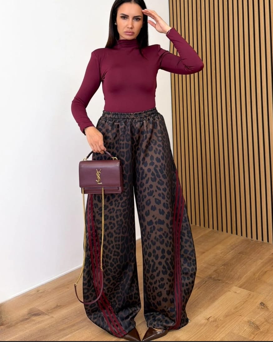 Δώσε ένταση στο στυλ σου με αυτό το εντυπωσιακό γυναικείο παντελόνι animal print . Ο μοντέρνος σχεδιασμός του συνδυάζει το δυναμικό μοτίβο animal με χρωματιστές ρίγες στο πλάι , προσθέτοντας sporty και fashion‑forward χαρακτήρα . Ιδανικό για καθημερινές εμφανίσεις αλλά και για πιο statement looks , προσφέρει άνεση και στυλ σε κάθε περίσταση .