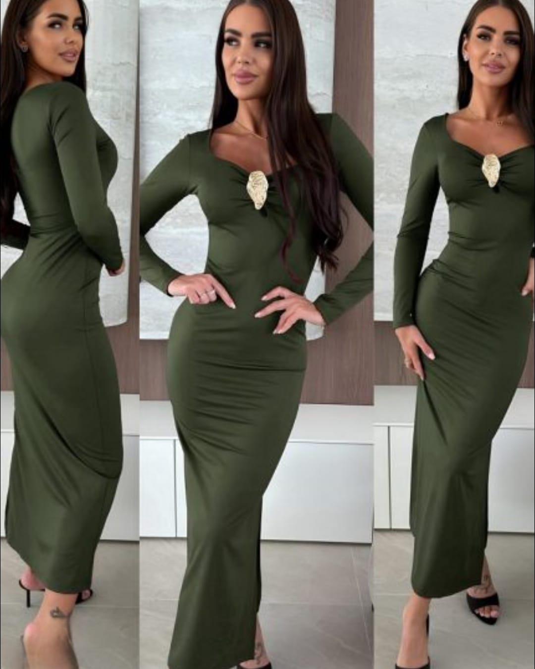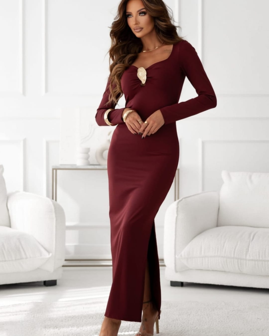 Ελαστικό Φόρεμα με Statement Αγκράφα – “Elegant Bodycon Gown with Bust Detail” – LO