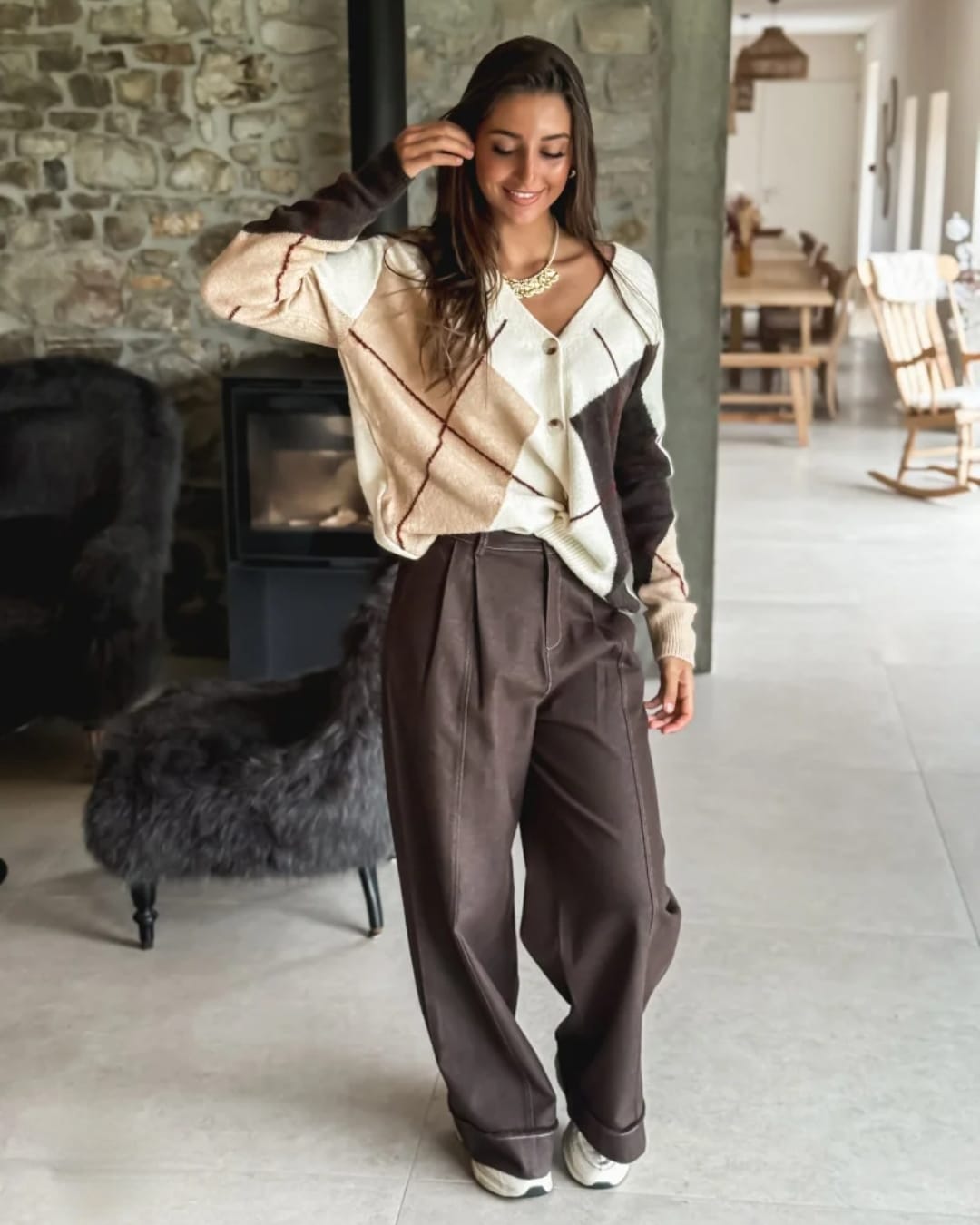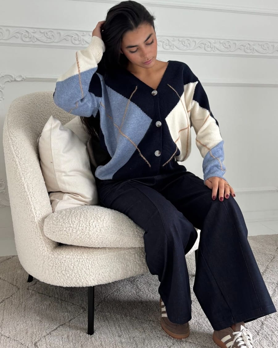 Ζακέτα με Γεωμετρικά Σχέδια – Μοντέρνα & Άνετη – “GeoChic Cardigan” – L0