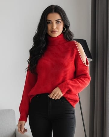 Ένα εκλεπτυσμένο πουλόβερ ζιβάγκο , φτιαγμένο από μαλακή , ελαστική πλέξη που αγκαλιάζει απαλά το σώμα . Η σιλουέτα του είναι θηλυκή και μίνιμαλ , αλλά αποκτά ιδιαίτερο χαρακτήρα χάρη στο ασύμμετρο άνοιγμα στον έναν ώμο , το οποίο λειτουργεί σαν διακριτική αλλά εντυπωσιακή λεπτομέρεια . Γύρω από το άνοιγμα , μικρές διακοσμητικές πέρλες είναι τοποθετημένες περιμετρικά , δημιουργώντας μια κομψή λάμψη και προσθέτοντας μια νότα πολυτέλειας . Το ζιβάγκο , προσφέρει ζεστασιά και ισορροπεί όμορφα με το πιο τολμηρό στοιχείο του ώμου . Το αποτέλεσμα είναι ένα πουλόβερ που συνδυάζει κλασική κομψότητα με μοντέρνα θηλυκότητα , ιδανικό για εμφανίσεις που θέλουν να ξεχωρίζουν χωρίς υπερβολές .