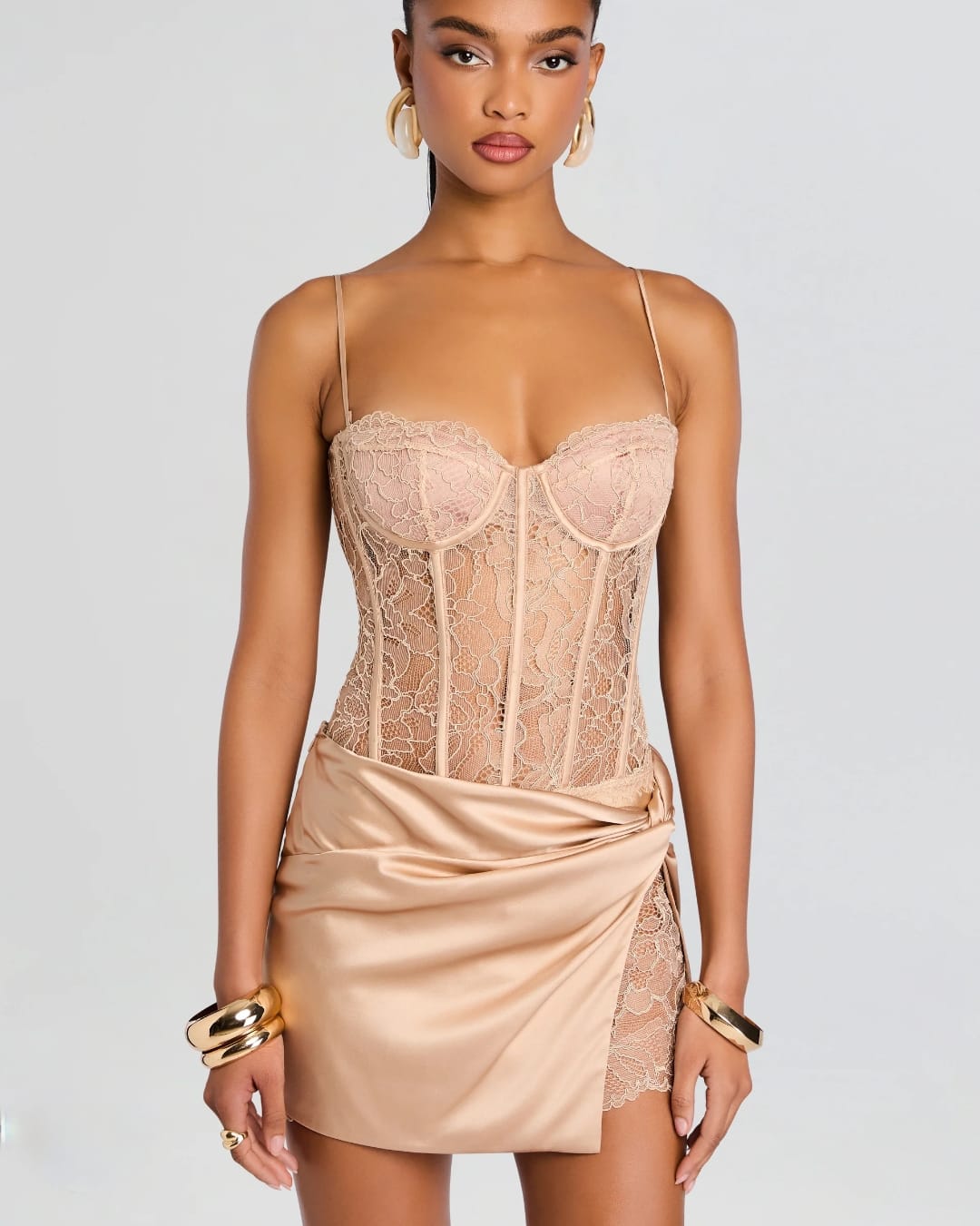 Μίνι Φόρεμα με Δαντέλα & Σατέν Άνοιγμα – Απόλυτη Αίσθηση Πολυτέλειας – “Lace Illusion” – LO