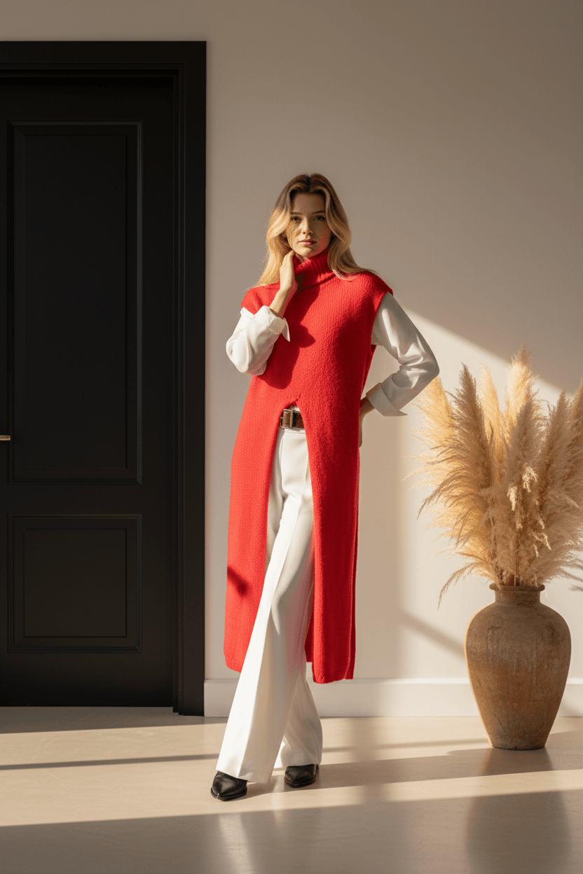 Μακρύ Αμάνικο Ζιβάγκο με Μπροστινό Άνοιγμα – ΄΄Sleeveless Long Turtleneck Knit with Front Slit΄΄ – AD