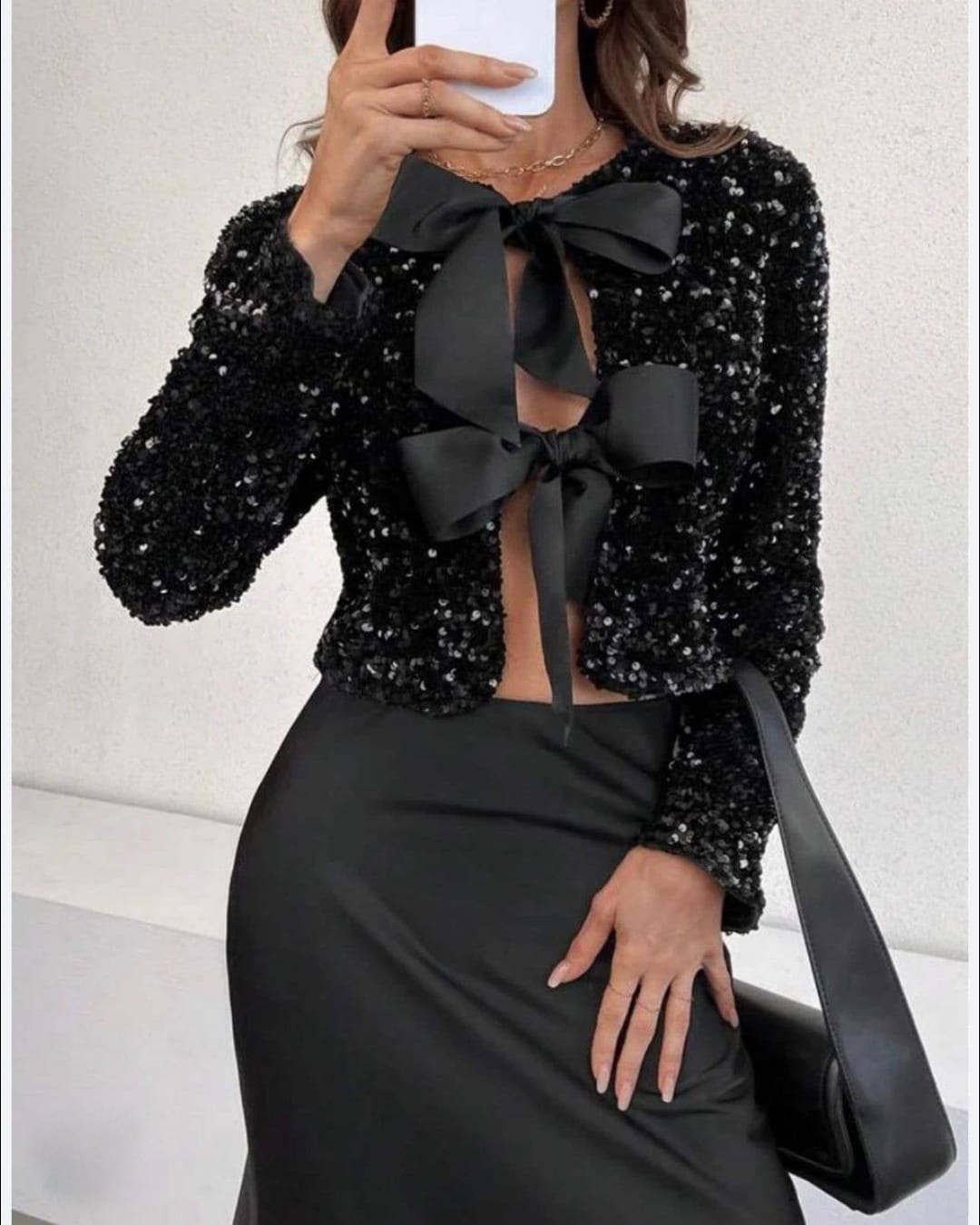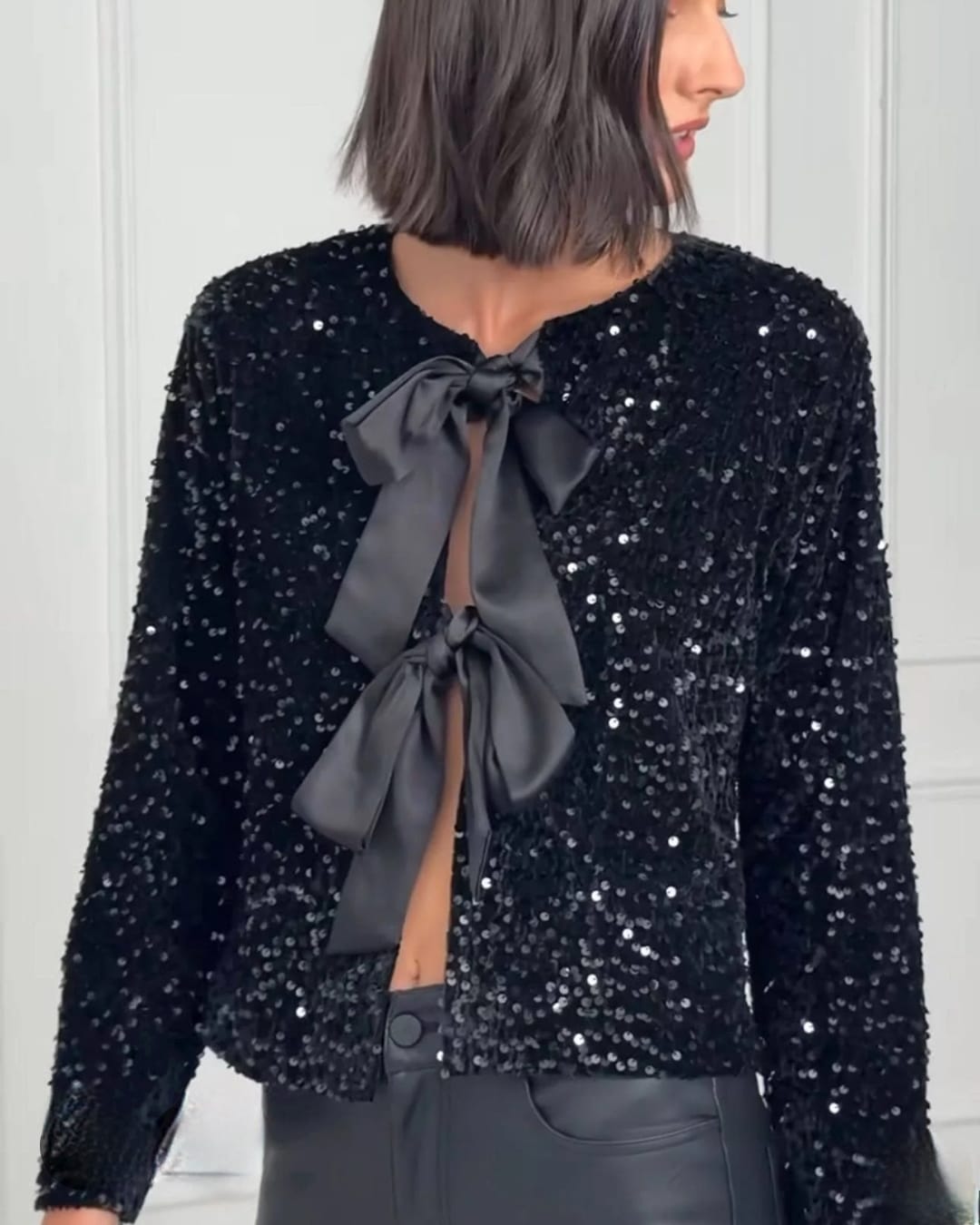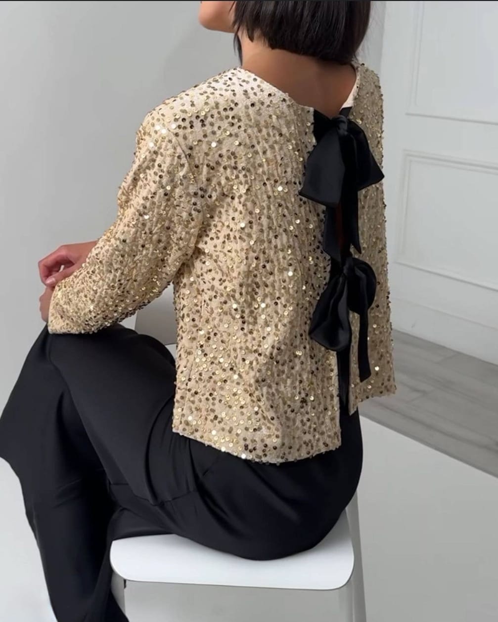 Μπλούζα με παγιέτες και κορδέλες – διπλής όψης – ανοιχτή μια πλευρά – Δύο όψεις , μία λάμψη – Twist & Glint – LO