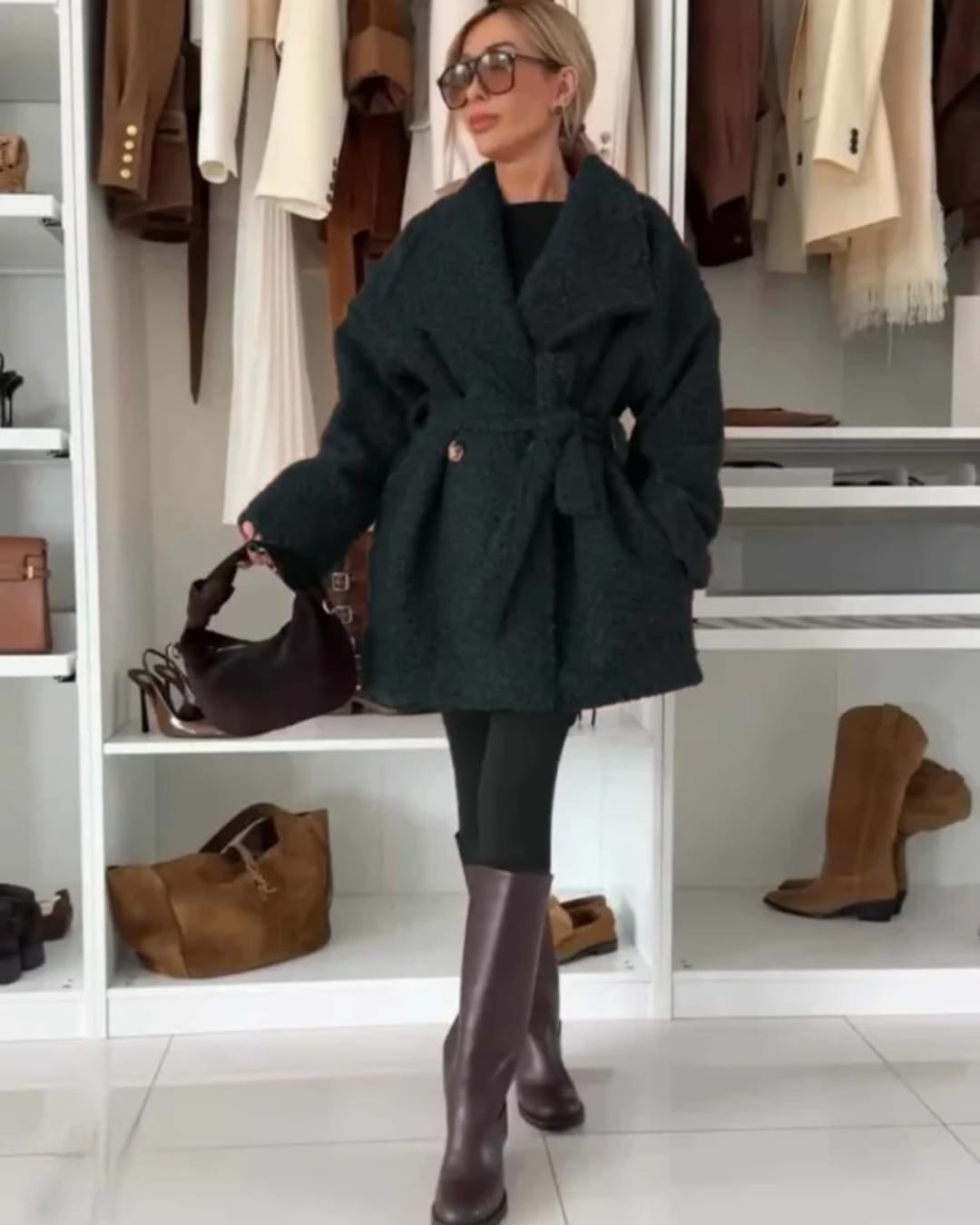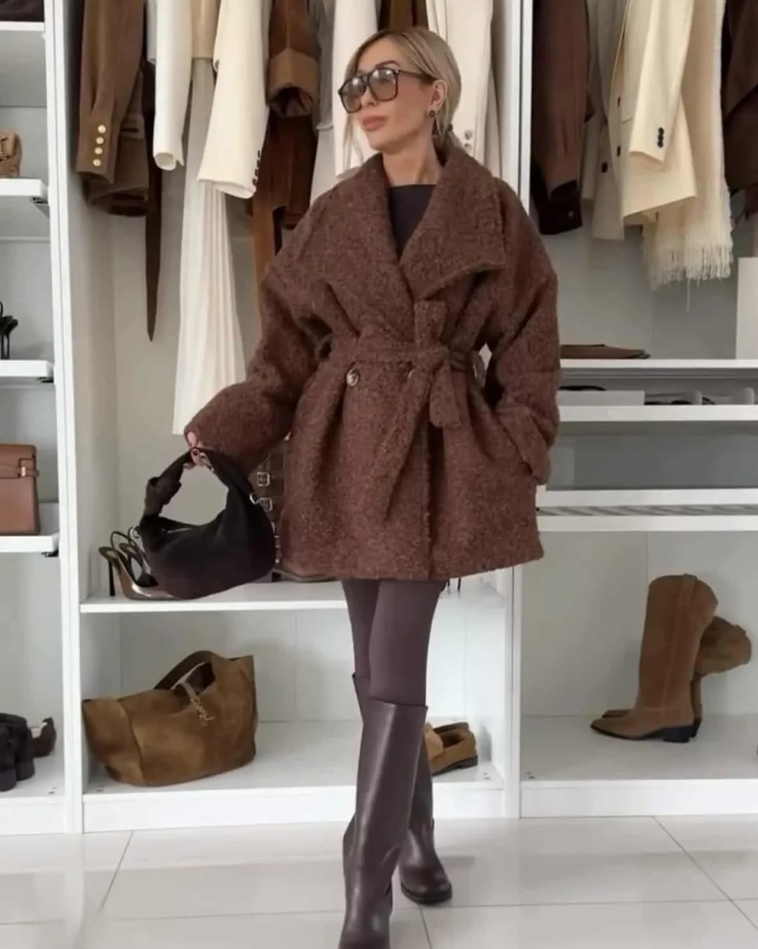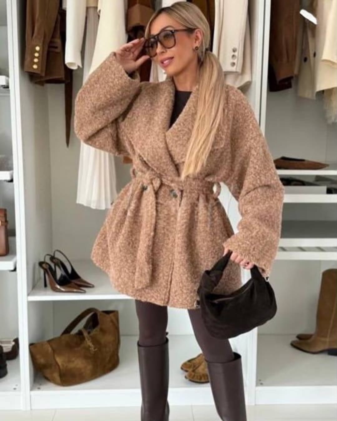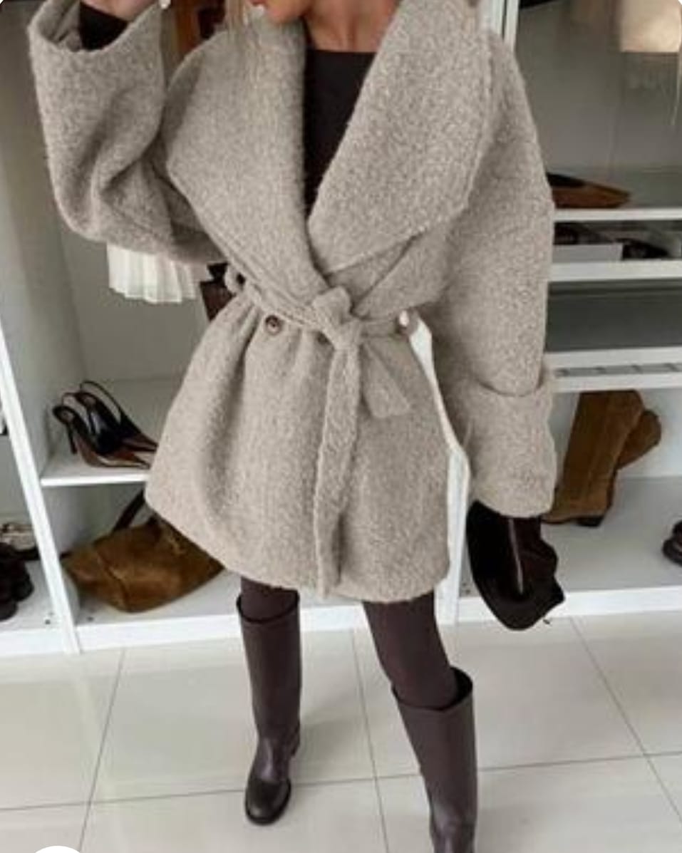 Μπουκλέ Παλτό με Μεγάλο Γιακά , Κουμπιά και Ζώνη – Αγκαλιά Ζεστασιάς – ” Bouclé Belle ” – LO