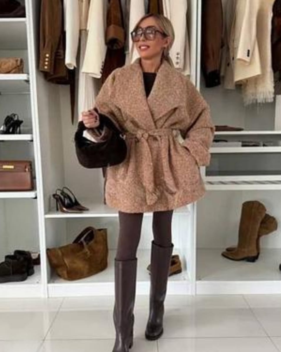 Ένα παλτό που συνδυάζει διαχρονική κομψότητα με cozy υφή . Το μπουκλέ ύφασμα , με τη χαρακτηριστική του ανάγλυφη επιφάνεια , προσφέρει αίσθηση πολυτέλειας και ζεστασιάς , ιδανική για τις κρύες ημέρες του χειμώνα . Ο εντυπωσιακός , φαρδύς γιακάς αγκαλιάζει τους ώμους και το λαιμό , προσθέτοντας δραματικότητα και στιλ , ενώ μπορεί να φορεθεί ανοιχτός ή ανασηκωμένος για επιπλέον προστασία από το κρύο . Το παλτό κλείνει με μια σειρά από κομψά κουμπιά στο μπροστινό μέρος , που ενισχύουν τη ρετρό αισθητική και προσφέρουν πρακτικότητα στην καθημερινή χρήση . Η υφασμάτινη ζώνη δένει στη μέση , τονίζοντας τη σιλουέτα και επιτρέποντας προσαρμογή στην εφαρμογή — είτε με χαλαρό δέσιμο για casual look είτε σφιχτά δεμένη για πιο θηλυκή γραμμή . Ιδανικό για να φορεθεί πάνω από φορέματα , πλεκτά ή ακόμα και με τζιν , το παλτό αυτό είναι ένα κομμάτι – κλειδί για κάθε χειμερινή γκαρνταρόμπα .