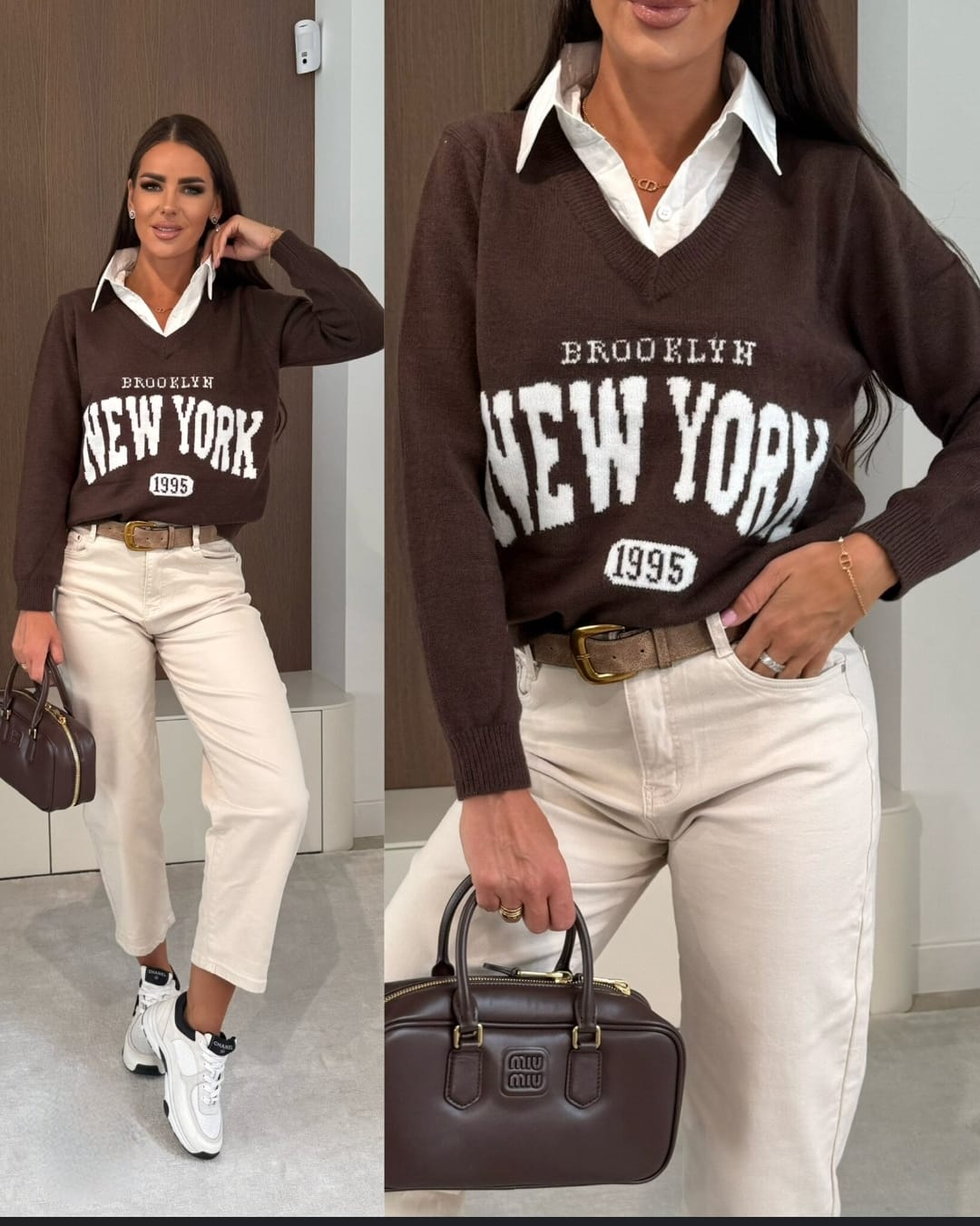 Φούτερ με Τριγωνική Λαιμόκοψη και Ενσωματωμένο Γιακά – “Preppy Insert Sweat” – AD