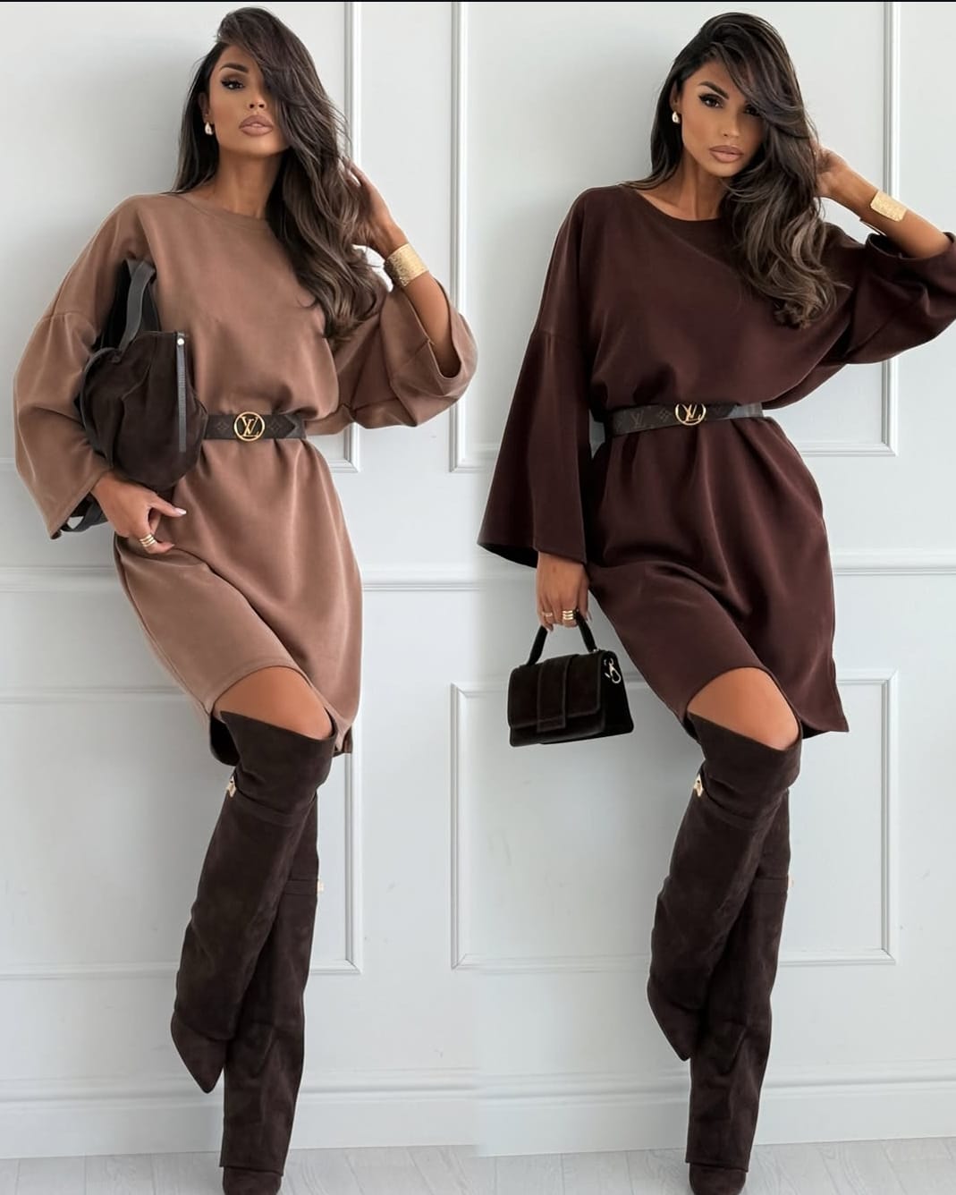 Φόρεμα με φαρδιά μανίκια και δική του ζώνη – ” Luna Belt Dress ” – AD