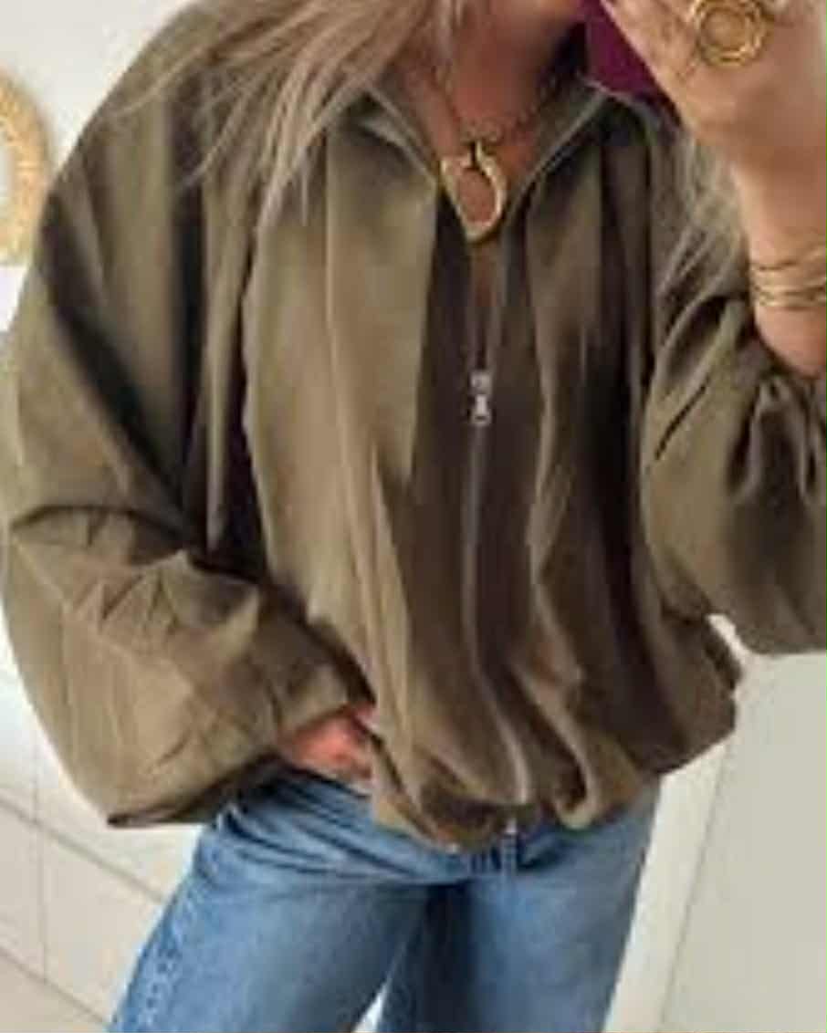 Ένα statement τζάκετ που συνδυάζει δομημένη αισθητική με παιχνιδιάρικες λεπτομέρειες , ιδανικό για όσους θέλουν να ξεχωρίζουν με στυλ . Γιακάς : Κλασικός , με καθαρές γραμμές , προσδίδει σοβαρότητα και ισορροπεί το ιδιαίτερο κόψιμο του υπόλοιπου σχεδίου .   Φερμουάρ μπροστά : Κεντρικό και λειτουργικό , επιτρέπει εύκολη εφαρμογή και προσθέτει μοντέρνα πρακτικότητα . Πιέτες στο επάνω μέρος : Μεγάλες και έντονες , ξεκινούν από τους ώμους και δημιουργούν όγκο και αρχιτεκτονική δομή στο μπούστο , δίνοντας δυναμική παρουσία . Το κάτω μέρος του τζάκετ καταλήγει σε balloon γραμμή με σούρες , δημιουργώντας μια φουσκωτή , ανάλαφρη σιλουέτα που προσθέτει κίνηση και χαρακτήρα .