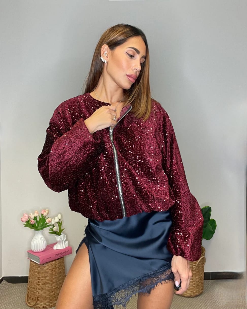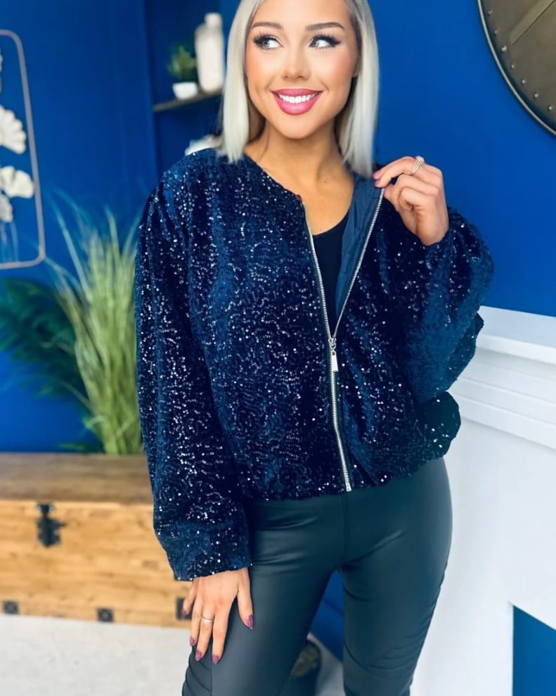 Bomber τζάκετ με φερμουάρ , καλυμμένο με παγιέτες , φόδρα – “Electric Glimmer Bomber” – LO