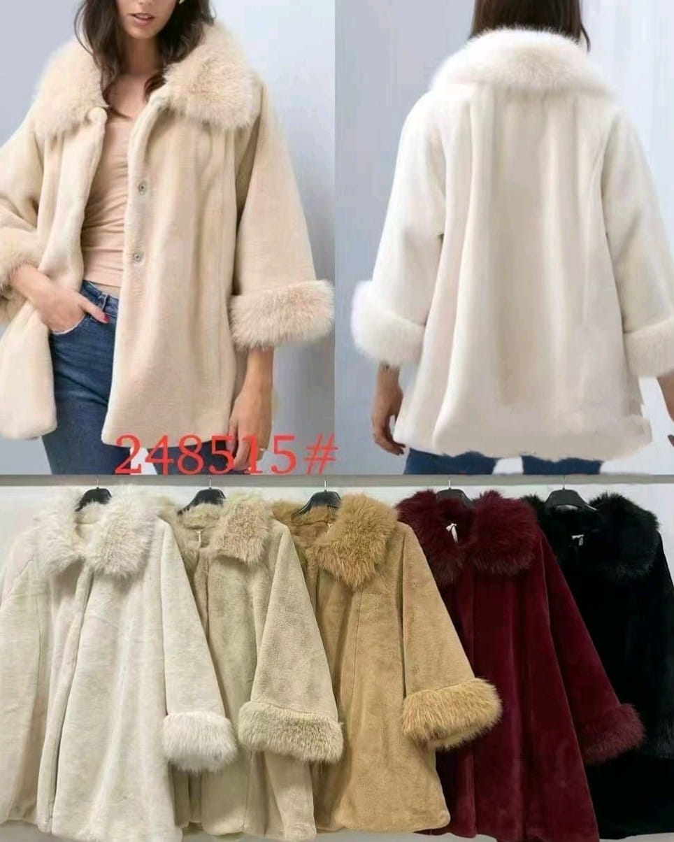 Oversize Παλτό με Συνθετική Γούνα , Γούνινος Γιακάς & Μανσέτες – ” Faux Fur Oversize Coat ”- LO