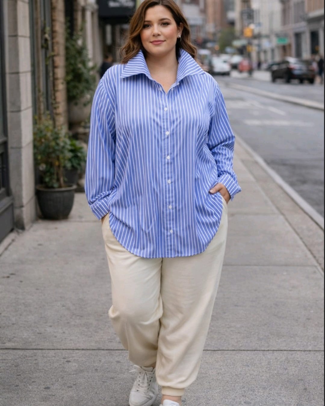 Plus Size Κλασική γαλάζια ριγέ πουκαμίσα με διαχρονικό στυλ – ”Blue Stripe Classic Shirt” – HO